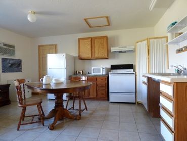 -- The kitchen includes microwave, full size refrigerator, full size electric oven, dinnerware, utensils/pots.